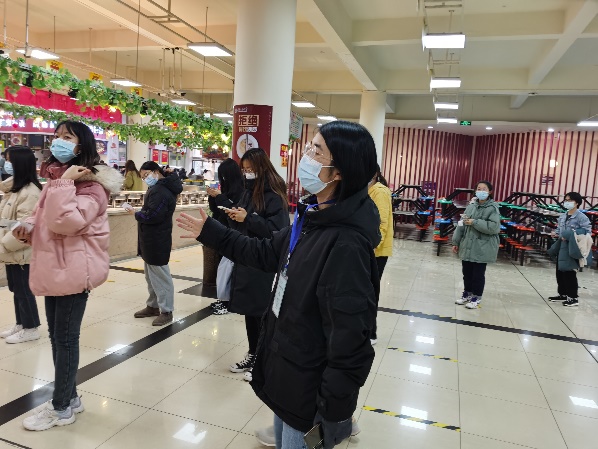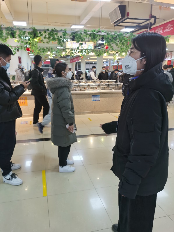 29日早晨七点,接到组长电话,紧急通知全员核酸,唐雅莉立即爬起床,匆忙洗漱后,15分钟内赶到核酸检测执勤点位,左手拿起对讲机接收指令,右手拿起小喇叭一遍遍的提醒:“请大家戴好口罩,保持一米五间距”、“后面同学快两步跟上”、“前面分成四路纵队”……平时很皮的同学最近也变得异常乖巧,服从学校安排,按时排队做核酸、错峰就餐、凭票洗浴、居寝线上学习,师生之间多了一些默契、理解和共同的期许。冬日的早晨冷风刺骨,两个小时的室外执勤脚已经冻到麻木,同事来电话说已在办公室煮好热乎的鸡蛋,你快上来吃早餐,我去换你。她心里一暖,战友情瞬间融化了冬日的寒冷。