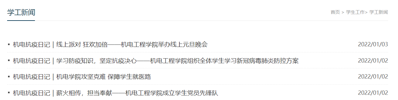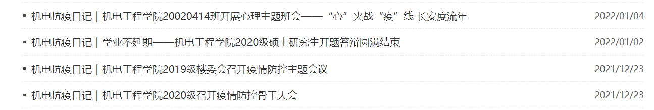 晚上在九公寓发完《学生就餐出入证》回到办公室,唐雅莉又坐在电脑前开始记录当日抗 “疫”工作的点滴,及时报送各类信息。她用文字凝心聚力,为大家传递温暖和希望,坚定抗疫必胜的信心。截至目前,唐雅莉在学院网站发稿28篇,内容涵盖机电抗疫行动、抗疫先进典型、特色做法、疫情防控科学知识、疫情期间线上文化活动、线上教学等各个方面,及时让全院师生第一时间了解学院抗疫工作现状,凝聚共识,共克时艰。