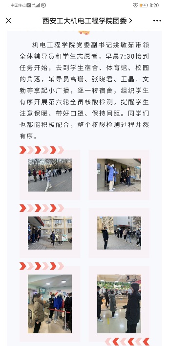 当记者问到返校参加疫情防控工作的感受时,唐雅莉谈道:自己只是抗疫工作中再平凡不过的一员,身边的同事在得知管控提级消息后,都第一时间返回校园,选择陪学生共同度过,以高度的责任感和使命感,投身到学校和西安的疫情防控工作中。还有无数为校园抗疫默默奉献的老师、同学、志愿者们,他们主动加入抗疫队伍,无私无畏,为校园安全、学生健康搭起了结实的屏障。还有很多在一线工作的医务人员昼夜鏖战,他们才是真正的英雄。接下来的日子,自己仍然会和学工同仁们一起继续奋战在校园疫情防控最前线,守护学生身心健康,为学校疫情防控贡献力量。相信只要大家携手齐心,科学防控,共克时艰,就一定能击破冬日里的疫情阴霾,在不久之后共同拥抱温暖的春光!