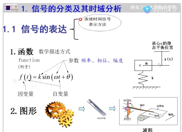 讲授内容:测试系统工作原理;信号的分类及其时域分析