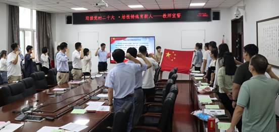 通过庄严的宣誓,全院教师进一步强化了立德树人的教育理念,并表示将坚决忠于党的教育事业,贯彻党的教育方针,履行教师的神圣职责,践行“敦德励学、知行相长”的校训,弘扬“忠诚进取、精工博艺”的校风,做有理想信念、有道德情操、有扎实学识、有仁爱之心的好老师,为党和人民的教育事业而努力奋斗,以实际行动迎接党的二十大。