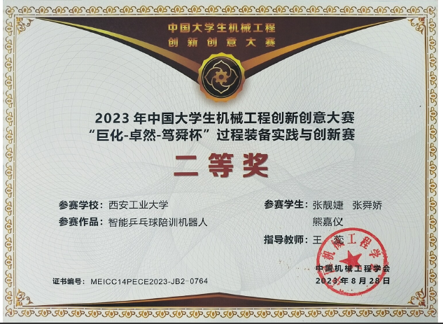 本届赛事共吸引来自浙江大学、西安交通大学、天津大学等全国127所高校的1282支队伍报名参赛,经过校赛、区域赛评审,遴选出130项(其中本科生作品88项、研究生作品42项)优秀作品入围全国总决赛。通过来自全国各地50余位资深专家组成了评审专家组对参赛作品进行评审,我校学生张靓婕、张舜娇等制作的“智能乒乓球培训机器人”等个项目荣获全国二等奖2项,全国三等奖1项。