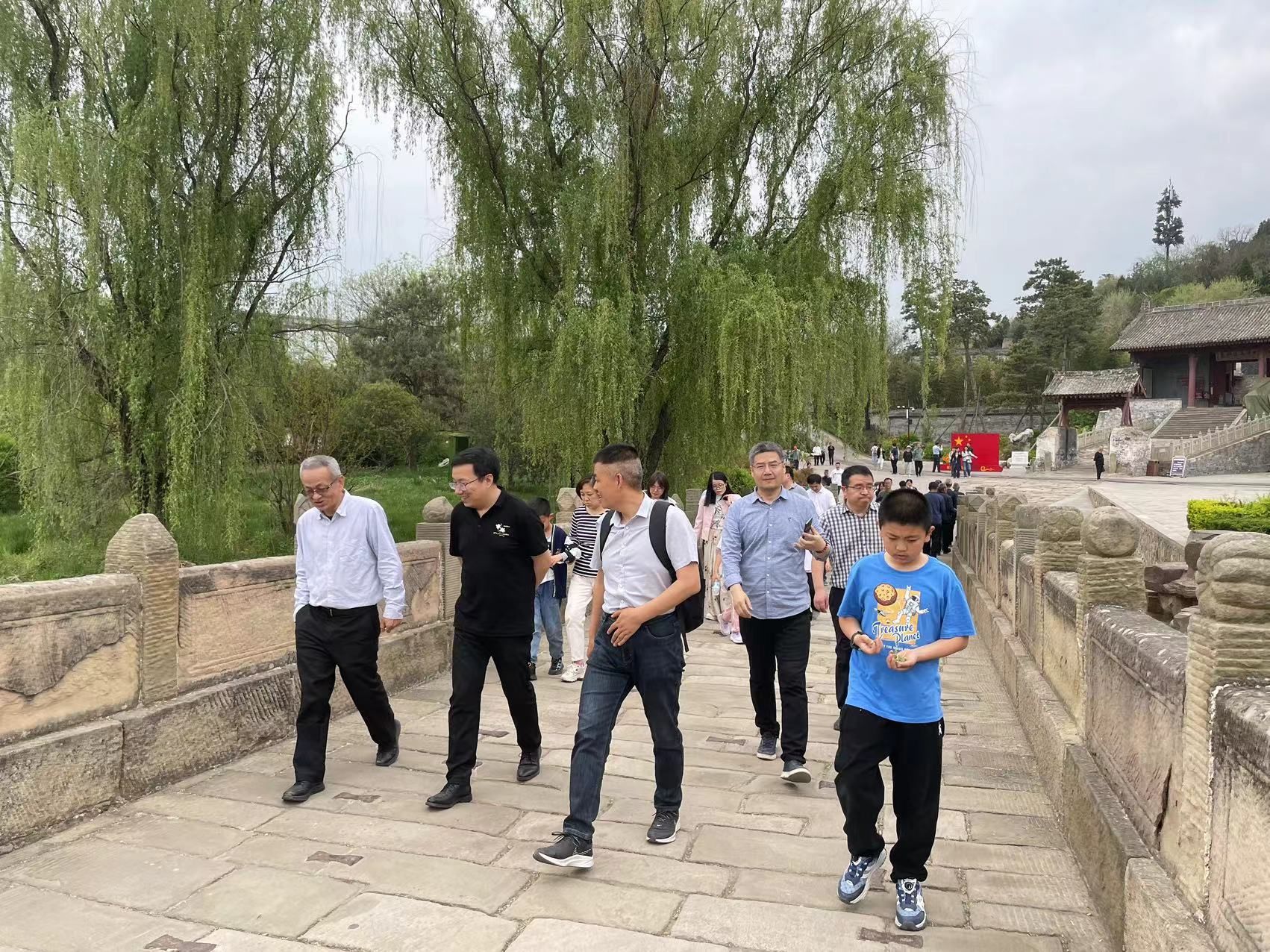 最后一行人拾级而上,来到八路军东渡黄河出师抗日纪念碑前。在庄严肃穆的纪念碑下,齐唱国歌,向烈士敬献花篮。