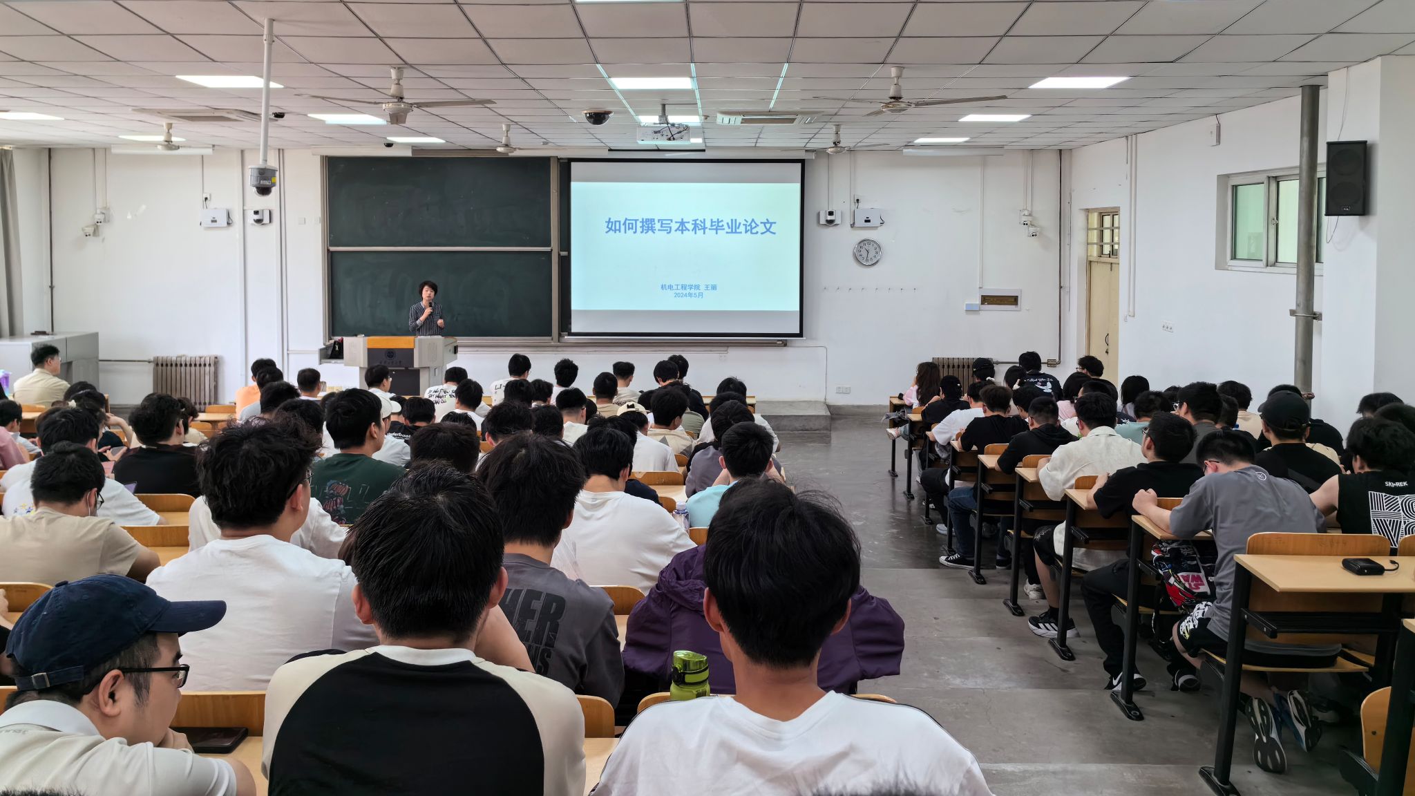 于5月27日上午在教1-201和教1-202教室举办了论文撰写指导会。此次会议邀请了机械电子工程专业负责人王丽副教授和智能制造专业负责人袁艳副教授作为主讲人,她们结合学校本科毕业论文的撰写规范和评分标准,为毕业生们带来了一场精彩的指导会。毕业班辅导员组织全体毕业生参与会议。