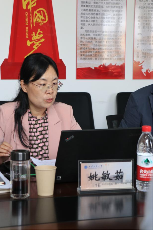 学院纪委书记姚敏茹汇报学院全面从严治党工作情况。姚敏茹指出,聚焦“两个确立”和“两个维护”,聚焦“关键少数”和“重点领域”,推进学院政治监督具体化常态化;严格落实“第一议题”制度,制定《成人短剧