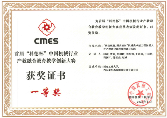本次大赛由中国机械工程学会、中国机械行业卓越工程师教育联盟、中国科技发展基金会联合主办,旨在促进机械行业产教深度融合,推动教育教学模式创新。大赛设本科组、研究生组,历经区域赛、国赛两个阶段展开。经过专家函评和现场答辩,由闫莉教授团队与西安秦川思源测量仪器有限公司联合申报的《“联动赋能、理实映射”机械类卓越工程创新人才产教融合课程群构建与实践》项目获得了全国一等奖。
