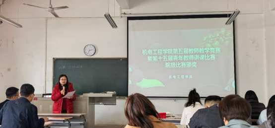 在工2-504举行第五届教师教学竞赛暨第十五届青年教师讲课比赛院赛颁奖仪式,对在此次比赛中表现卓越的教师进行表彰。此次颁奖仪式由副院长曹蔚主持,全体教师共同出席。