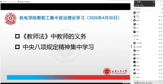 召开教师政治理论学习会,全体教职工齐聚云端共同学习。会议由学院党委书记程新峰主持。