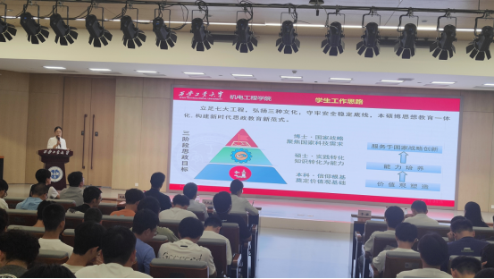 学院院长王洪喜介绍了学院的发展历程、师资力量、学科建设、科研成果和学院人才培养成果,帮助新生们更好地了解所学专业,明确学习方向。他强调,机电工程作为一门综合性学科,在国家工业现代化进程中扮演着重要角色,鼓励同学们珍惜大学时光,努力学习专业知识,培养创新精神和实践能力,为未来的职业发展打下坚实基础。