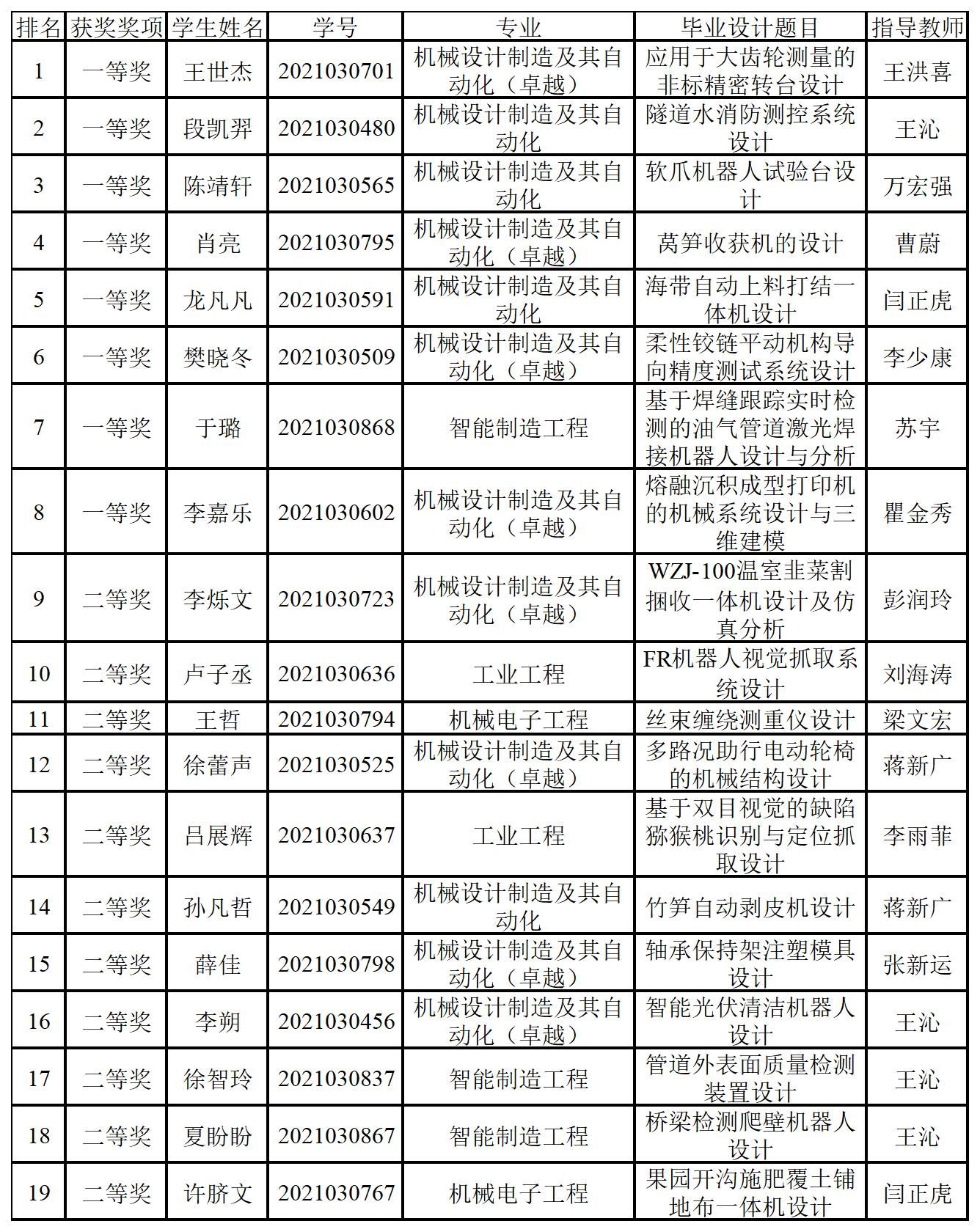 “未来之星”——机电89级校友毕业设计专项奖励评选结果