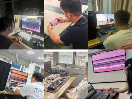 学院报告厅作为主会场,容纳了包括教授代表、青年教师、师生党支部书记及学生骨干在内的60余人。各教研室、实验室、会议室、教学楼设立了分会场,方便教师、科研人员和部分学生参与观看。天安门广场上,45个方(梯)队依次通过,代表着中国武装力量的现代化成就与传承;千里之外的成人短剧