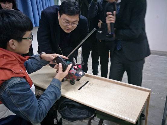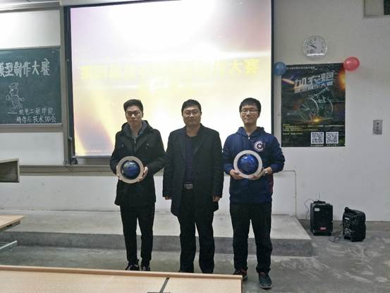 大会伊始,主持人悉数介绍到场嘉宾。万宏强教授和院团委书记唐雅莉老师分别上台致辞,院科协主席赵栋详细介绍了本届大赛的基本情况。赛事中,各参赛小组的作品各有千秋;工厂风的传统炮、科技派的电磁炮,独具特色的瞄准方式、别具一格的发射装置,使得比赛精彩纷呈,亮点涌现,惊喜不断。第八组采用液压动力系统和连发装置,理念新颖,获得阵阵掌声;第十一组以“长城”为外观,造型独特,令人耳目一新;第十八组使用电压显示装置,实时监测,为打中不同靶心提供有力支撑。优秀的作品伴随着讲解员激情洋溢的讲解说明,掌声不断,引起了评委和观众们的一致好评。最后,万宏强教授、团委书记唐雅莉老师和科协主席赵栋分别为获奖队伍颁奖并合影留念。