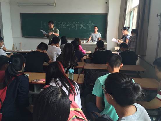 2014级全体班干部在工二—501会议室召开,14级辅导员黄彦军和宋荣新老师参加了会议,黄彦军老师担任主讲。