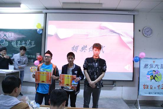 学生会艺术文化部于2015年4月8日在教2—301教室举办了“最强大脑”的活动。参与本次活动的有团委副书记王瑞旭、学生会主席陈嘉豪、副主席何俊、青协主席潘兵、经管学院网络部副部长田杨以及机电院团委学生会各部门的部长、副部长。