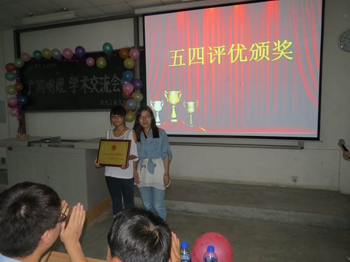 2014年“五四评优”表彰大会在教1-102隆重举行,对一年来全院团员青年中涌现出来的先进集体及个人进行了表彰。院团委书记刘璐老师、副书记王瑞旭、学生会主席唐沙出席了此次大会。