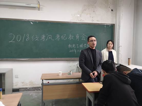 召开2018级学生考风考纪教育大会。2018级辅导员黄彦军、王晶、许格宁及学生代表参加了会议。