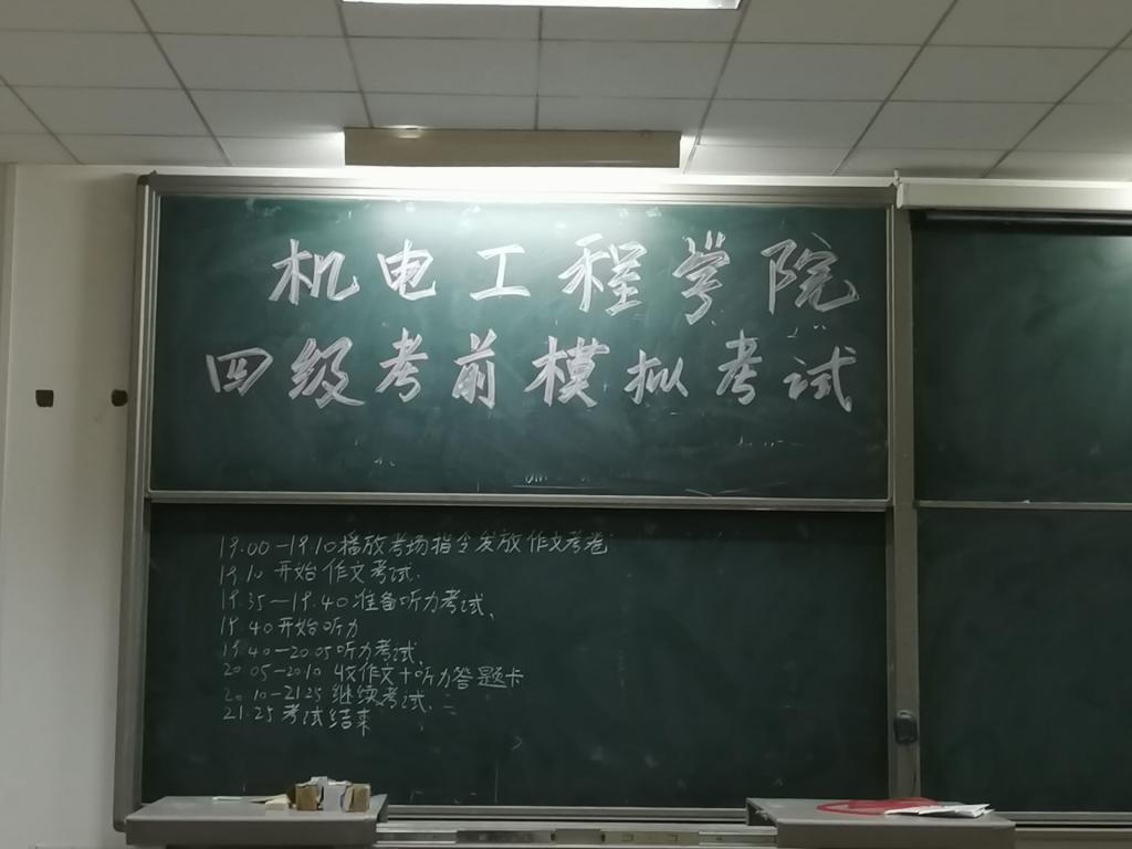 本次模拟考试前期准备周密完备,严格按照全国大学生英语四级考试流程进行。相关人员提前到达指定位置集合,安排考试各项事务。18:30考生开始陆续入场,认真准备考试用品,调整考试心态,体现出考生们对于本次模拟考试的重视。19:10考试正式开始,考试期间考生们都能够严格遵守考场纪律、认真答题,体现了机电学子认真、严谨的学习态度,彰显了成人短剧
