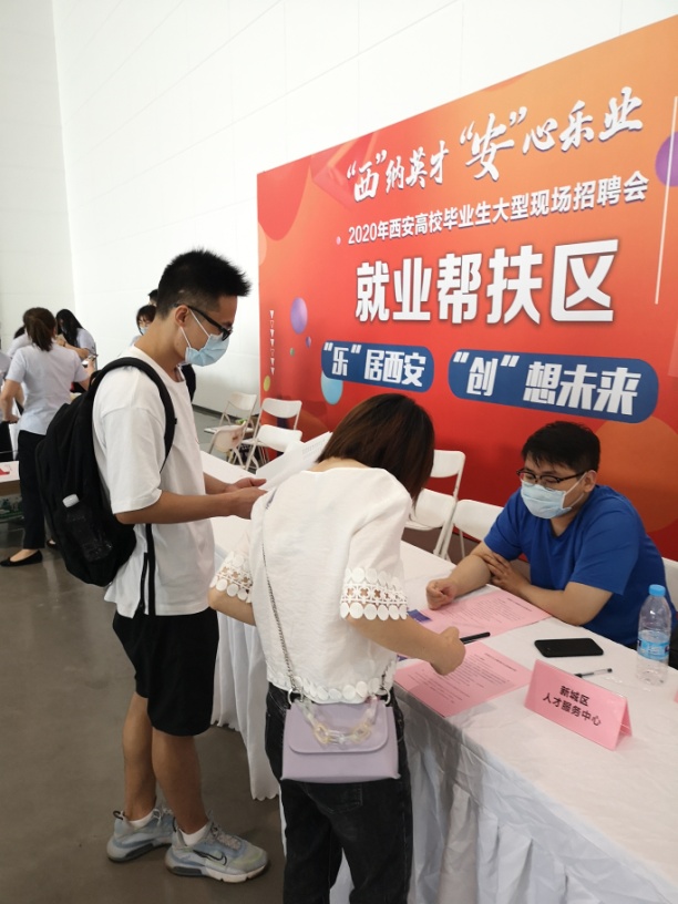 离校未就业的建档立卡、少数民族毕业生参加由西安市人力资源和社会保障局于西安国际会展中心举办的“西”纳英才“安”心乐业2020年西安高校毕业生大型招聘会。
