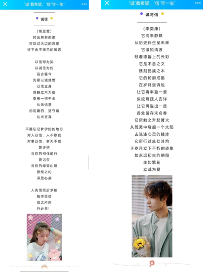 截止2022年5月26日,共征集到作品67件,其中散文53件,诗歌6件,叙事文7件。在征集到的作品中,同学们引经据典、语畅诚信,脉络清晰的表达了以诚待人、以诚立业的重要性,诚心实意的抒写了对祖国哺育与呵护的感激之情。本次活动共评选出一等奖1名、二等奖2名,三等奖3名,并在成人短剧