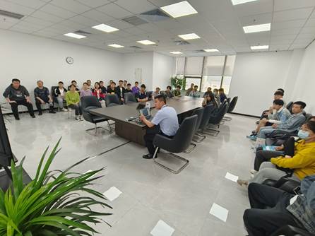 师生。在他的带领下,学生们参观了隆基乐叶公司,听取了关于公司发展概况、重点发展战略及产业布局的介绍,简要了解了单晶硅片、电池组件等创新产品,感受了企业的特色文化。通过现场解说、视频资料向大家介绍了公司的招聘需求,并就本次面试流程及注意事项作了详细说明。