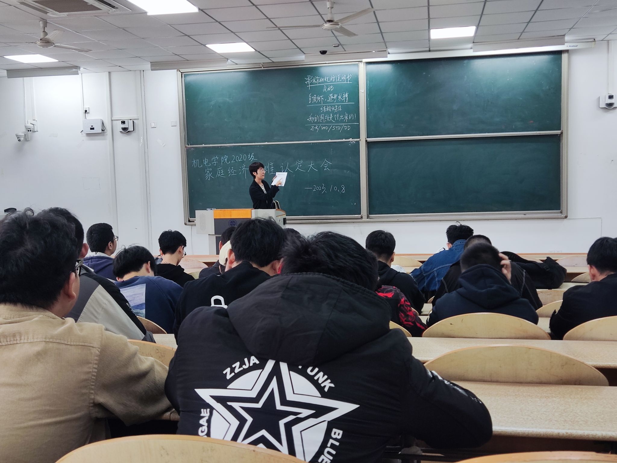 2020级近日在教1-102和教1-103召开了家庭经济困难生认定大会。本次会议的主要目的是进行家庭经济困难生民主评议,会议由辅导员唐雅莉、马芳荣主持,151名民主评议小组成员参加。