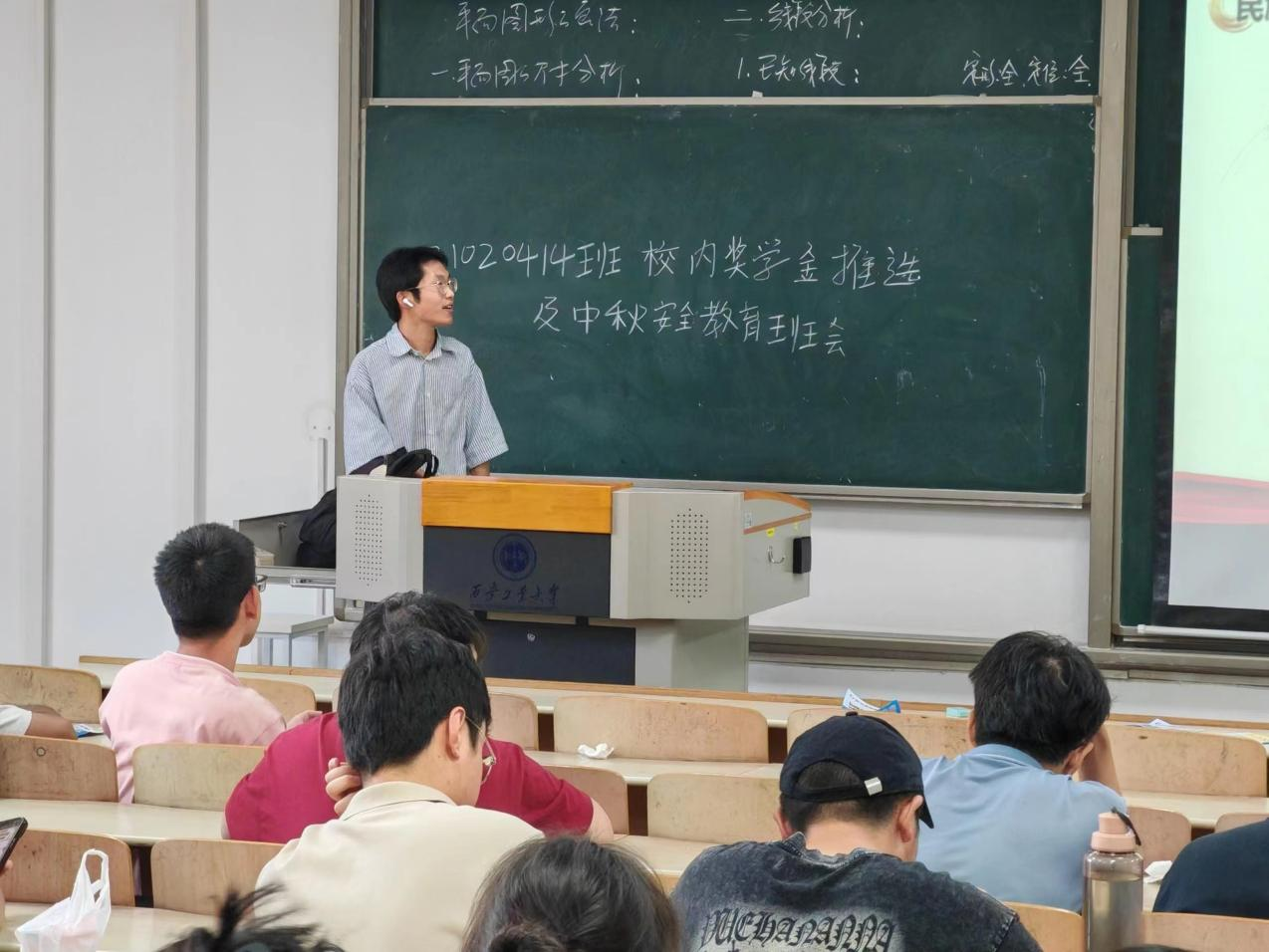 此外,班会还特别强调了交通安全的重要性。要求大家要做好中秋节假期去向统计,假期外出游玩时确保自身安全,辅导员们提醒同学们注意旅途安全,避免因赶时间而出现意外情况。因各种原因留校的同学应注意在校用电安全,按时熄灯,不私改电源、使用违章电器,加强火灾防范意识,同时要加强宿舍文化建设,努力营造团结、温馨、和睦的宿舍文化氛围,自觉遵守学校作息时间,充分利用假期时间充实自己,会议结束后各班同学学习并签署了《2024年中秋假期安全自律承诺书》。