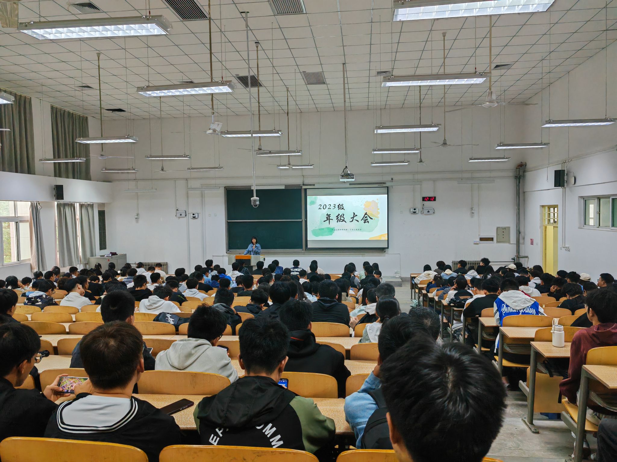2023级召开年级大会。辅导员张晓君、安春雨分别主持,全体2023级学生参加了会议。
