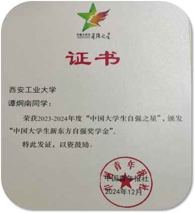 在科技竞赛方面,谭炯南多次参观科研实验室,在活动中他感受到研发、设计机器的乐趣。他主动与负责老师、辅导员沟通,积极参加各种比赛,在实验室与师长的交流学习中,他的实践思维、竞赛能力得到了迅速提高,累计获得中国机器人及人工智能大赛国家级二等奖、全国三维数字化创新设计大赛国家级二等奖、中国高校智能机器人创意大赛等国家级、省级、校级奖项20余项,个人能力全方面提高。