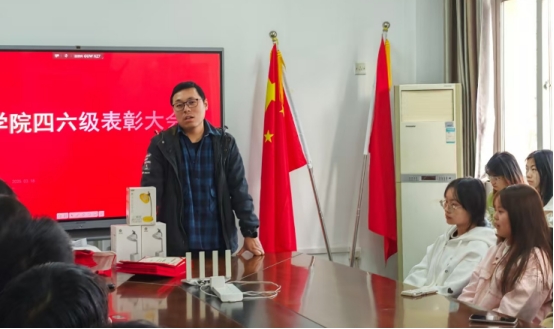 举行了四六级“过儿班”总结表彰会,对在2024年12月全国大学英语四六级考试中取得优异成绩的部分学生进行表彰,并宣布下一期“过儿班”即将开班。学院领导、教师代表及全体“过儿班”学员参加了此次会议。