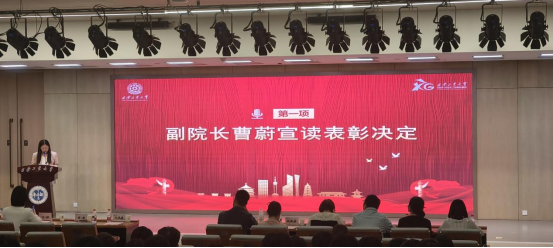 在热烈的掌声中,副院长曹蔚宣读了《关于表彰先进集体和优秀个人的决定》,向所有在学业、科研、服务、实践等方面表现突出的师生致以崇高敬意,并勉励广大同学继续向榜样看齐,勇攀高峰。