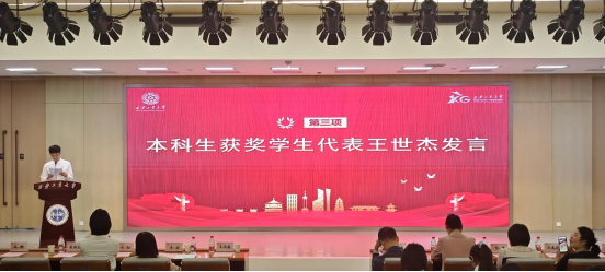 每一张奖状,都是一份肯定;每一次登台,都是一次绽放。典礼中,获奖代表的真情发言赢得阵阵掌声。本科生王世杰分享了大学四年在学习与竞赛中不断突破自我的经历,感恩学院的栽培和老师的指引。