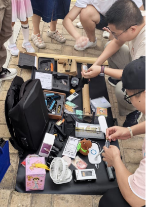 的同学们还拿出了自己亲手制作的创意小物件。手工打磨的金属书签、简易的电子小夜灯、设计精巧的机械摆件等,这些凝聚着他们智慧与汗水的作品,以实惠的价格吸引了众多同学的目光。