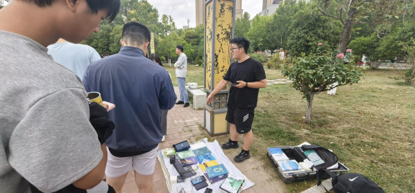 学生们的摊位前热闹非凡。不同于其他摊位,这里摆满了各类专业书,精密的万用表、功能完好的电烙铁、专业的机械零件模型等整齐陈列,每件物品都诉说着他们大学四年的学习与成长故事。许多低年级的机电学子纷纷围拢过来,他们不仅挑选着心仪的专业课本,还与学长学姐们探讨起专业知识与学习经验。