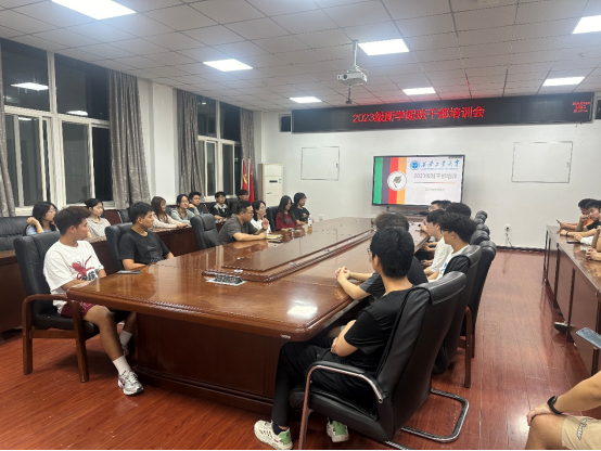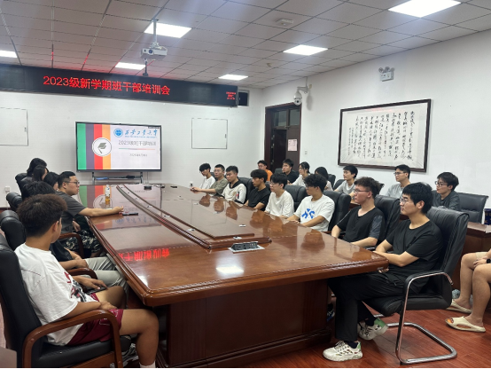2023级召开新学期班干部培训会。2023级辅导员张晓君、安春雨出席会议,全体班级干部参会。
