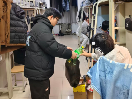 组织开展宿舍卫生及安全专项检查,并同步启动闲置空瓶回收爱心活动,以“安全+公益”的双重行动为校园文明建设注入鲜活力量。