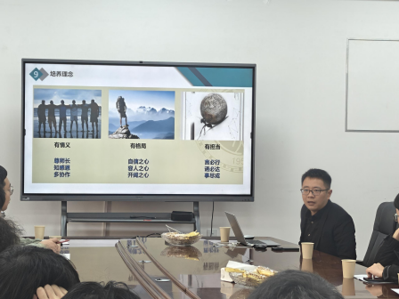 随后,王沁副教授介绍了自己带领的研究室情况。该实验室面向行业实际应用需求,聚焦机器人设计与制作、机器视觉及人工智能相关技术,开展科技创新与工程实践工作。同时,他分享了实验室的核心培养理念——“有情义、有格局、有担当”,其中“有情义”强调尊师长、知感恩、多协作;“有格局”倡导树立自信之心、容人之心、开阔之心;“有担当”则要求做到言必行、诺必达、事尽成,为同学们在科创道路上的成长指明了方向。