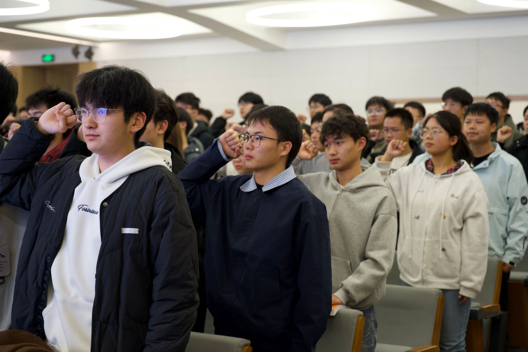 新学期学风建设方案》,明晰了各项工作标准与行动准则,为学风建设划定实施路径。辅导员代表杨琼老师以殷切话语为同学们学习成长建言献策,传递教师对学风建设的责任与期许。学生代表丁一辰分享了学习经验与学风建设感悟,发挥优秀学子的示范引领作用。随后,学生骨干王凯洋宣读《争做优良学风践行者》倡议,丁一辰领誓,全体同学起立宣誓,以铿锵誓言立下践行优良学风的青春承诺。