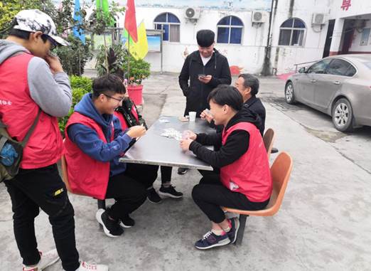 15位活动成员到达草滩敬老院后,大家各自分工明确,分三组进行志愿服务活动。部分同学拿起工具打扫院子,清理垃圾,为老人们提供了一个良好的生活环境。部分同学发挥自己的兴趣特长,陪老人下象棋、打扑克,与此同时,大家也抓住机会向老人们请教一些生活知识,老人们也都耐心的一一讲解。另一部分同学则陪老人们聊天,老人们亲切的询问志愿者们的近况,并且向大家讲述了自己的往事。在活动进行中,志愿者们与其他学校同学进行了交流互动,提高了大家的社交能力,同时希望可以为志愿服务奉献出自己的一份力量。