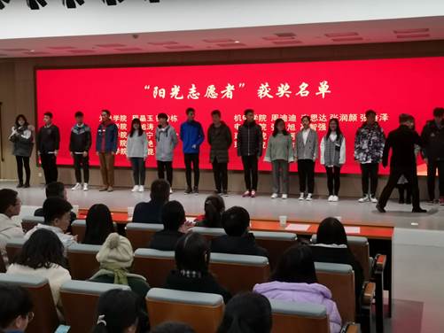 起朝剑同学荣获“最美志愿者”荣誉称号,周迪迪、张润颜、张垂泽、李思达同学荣获“阳光志愿者”荣誉称号。