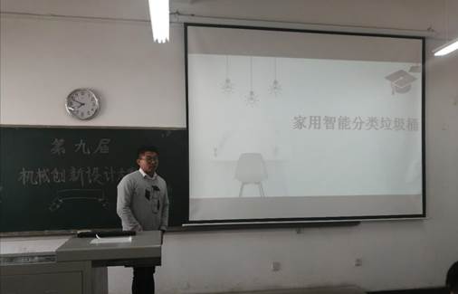 此次大赛主题为“智能家居、幸福家庭”,主要内容为助老机械与智能家居机械,参加比赛的选手来自各学院各年级总计42组,比赛开始前,千学明老师对各位评委老师进行了简单介绍并对比赛规则和比赛重要性再次强调。各参赛组需依次上台进行5分钟的讲解并有5分钟时间回答各评委的提问。大赛伊始,各参赛组便已热情高涨,上台讲解的选手脸上不见任何慌张,而是对其创新项目侃侃而谈,从创作背景、创新点、设计面临的问题与解决等方面进行了详细讲解。同时评委们认真思考各组项目的讲解,将其项目的薄弱处作为切入点进行进一步提问。而后经由七个小时的激烈角逐,比赛的最终结果浮出水面,其中《可分离式多功能轮椅床》、《“智坐”辅助起坐智能床垫》等15个项目斩获一等奖,《智能饮品机》、《智能晾叠衣架》等20个项目荣获二等奖,《便携式多功能按摩器》、《城市生活智能垃圾分类箱》等7个项目获得三等奖。最后,此次大赛在评委高佳宏教授的总结致辞后落下帷幕。