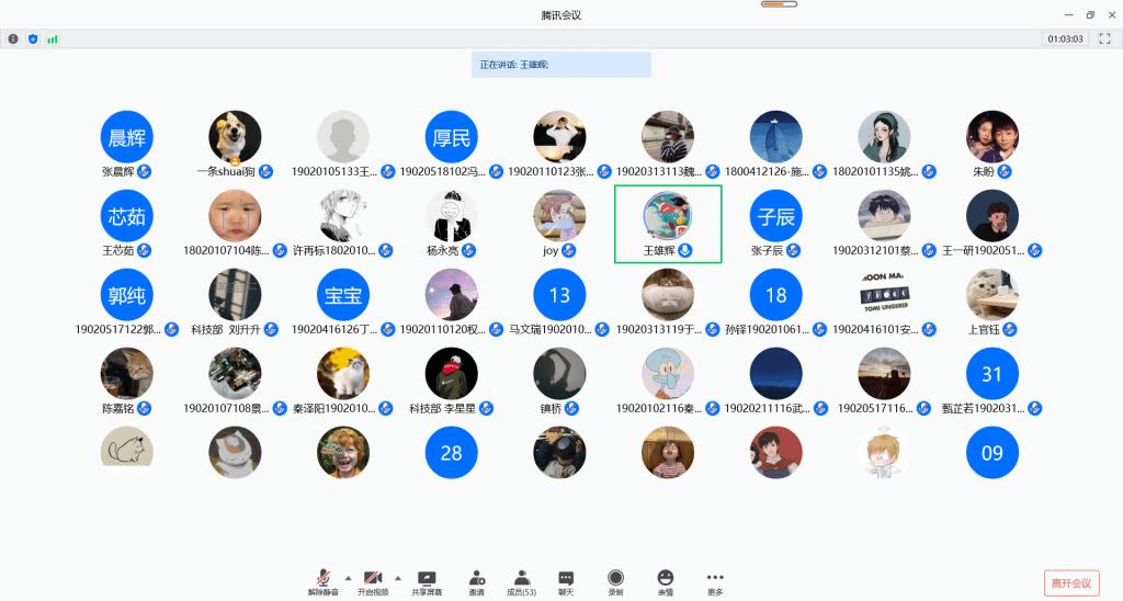 科协在线上举办本学期工作总结大会,参加此次会议的人员有科协主席王雄辉,科协副主席李嘉玲,科协副主席许再标及科协各部门成员。