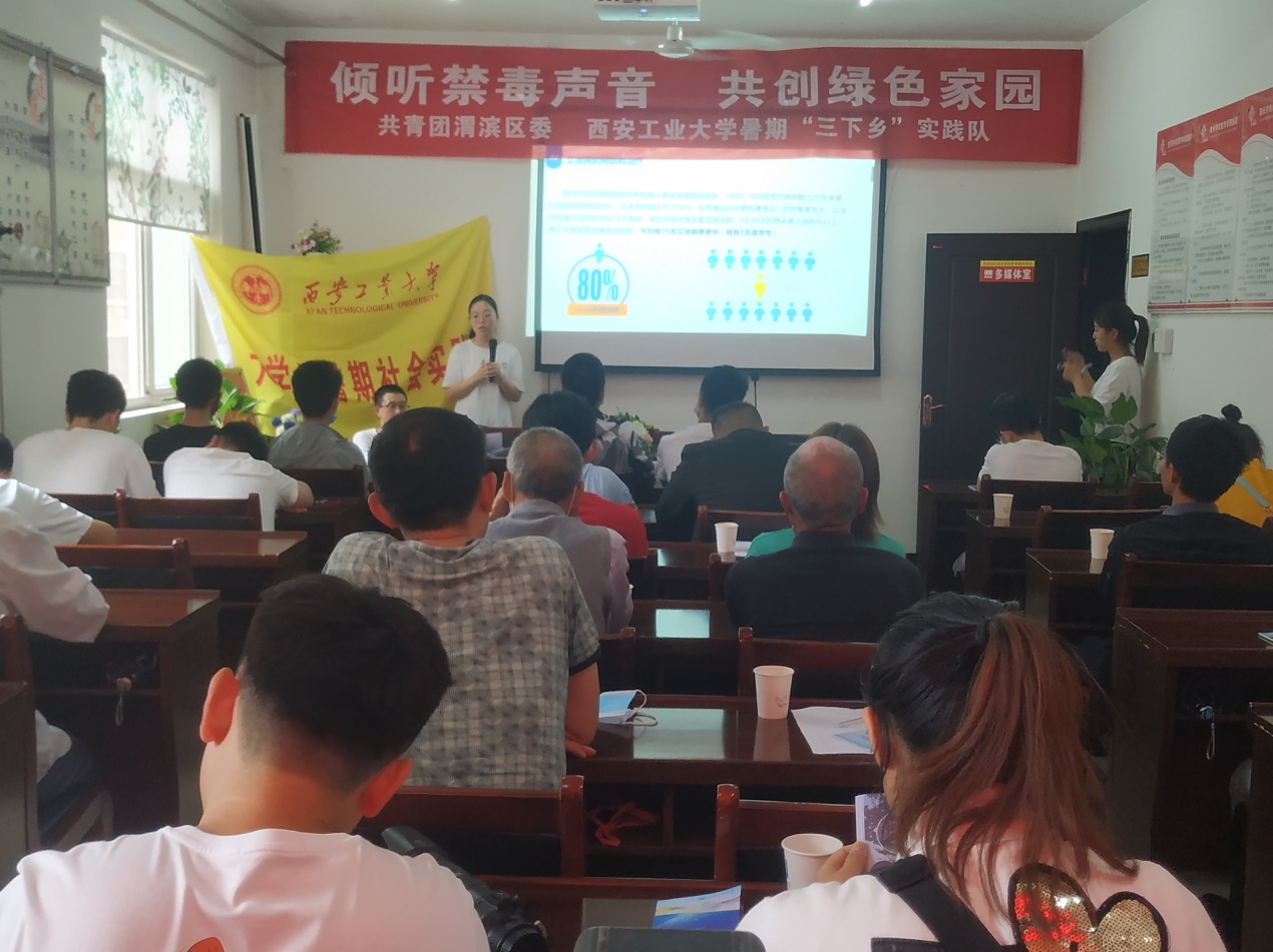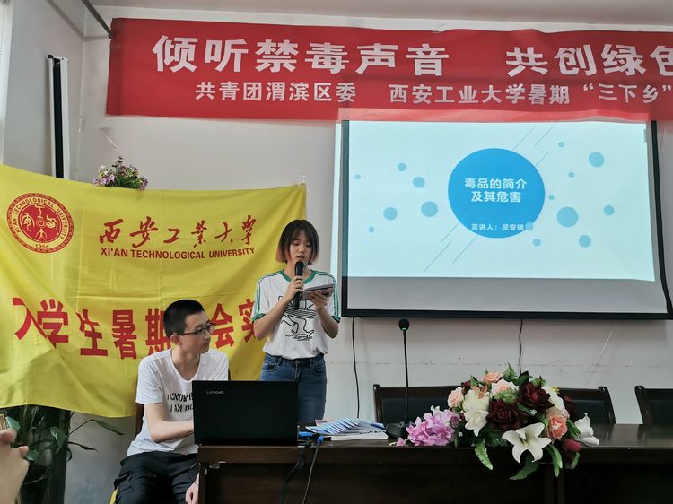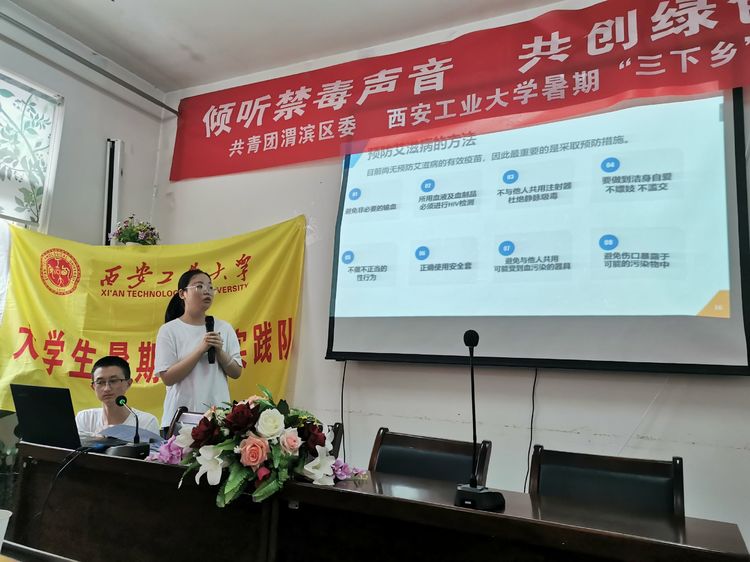 屈安娜同学讲解“禁毒”的基本知识,包括毒品的种类及其危害,通过讲述当地公安机关破获特大涉毒团伙的真实案例让大家深刻意识到毒品对我们生活的严重危害,接着带领大家一同观看禁毒公益宣传片《我与国徽同行》,让大家了解到禁毒宣传的必要性,也提升了社区居民和在坐的青少年学生的禁毒、拒毒意识。宣讲会第二项由光电工程学院李文青同学负责讲解艾滋病的基本知识,包括艾滋病传染方式、预防和治疗的方法、以及如何处理与艾滋病病人的关系等,她强调我们应平等对待和关爱艾滋病病人,尊重他人隐私。宣讲会第三项由成人短剧