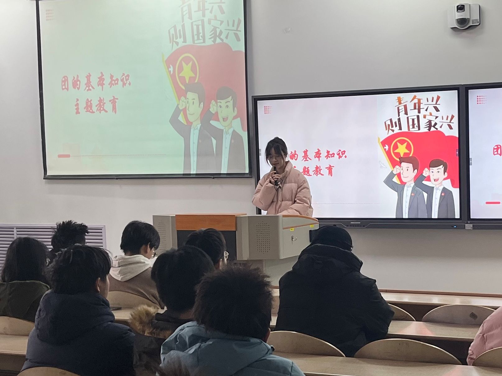 第一项,团员国琪蕊带领新团员面向团旗宣读入团誓词。第二项,老团员代表李倩婧发言。她对各位新团员进行了团的基本知识主题教育,让新团员们对共青团的认识和理解更加深刻。