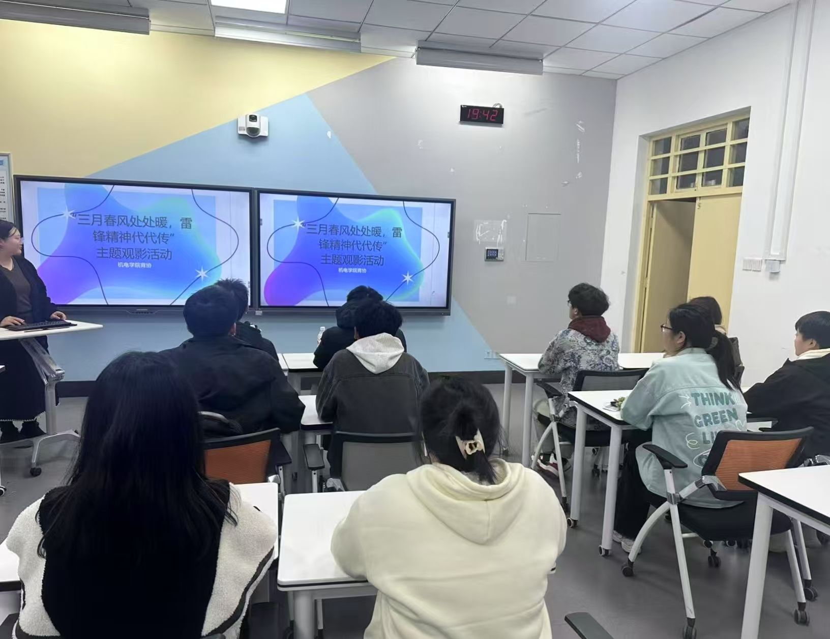 青年志愿者协会团支部组织了以“传承雷锋精神,激发时代力量”为主题的观影活动,邀请部分学生代表观看了经典影片《雷锋》。活动通过生动的影像资料,让同学们更加深入地了解了雷锋的事迹与伟大精神,激发了大家传承雷锋精神的决心和行动力。