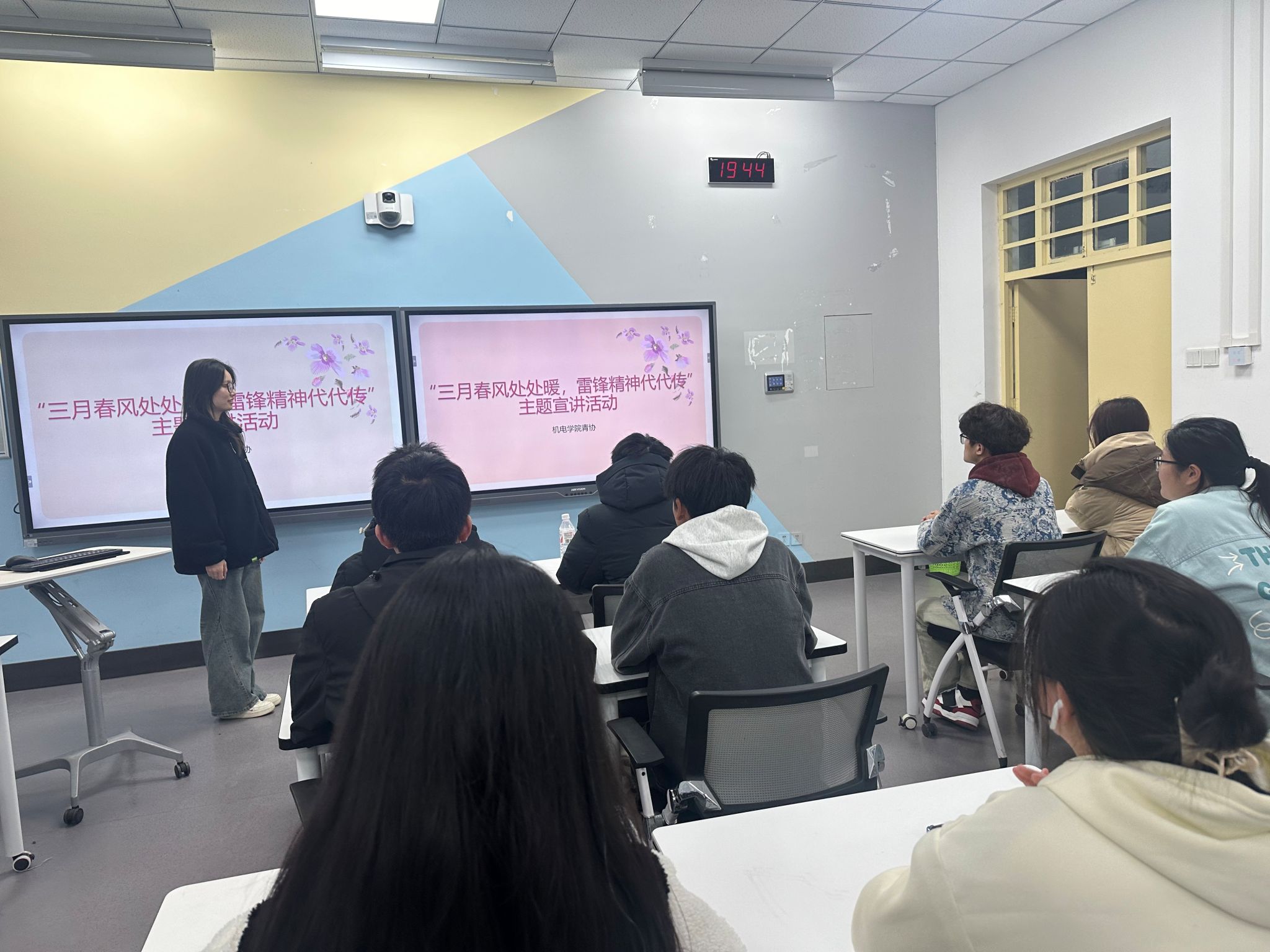 青年志愿者协会团支部在多功能教室开展了“三月春风处处暖,雷锋精神代代传”的主题宣讲活动。活动邀请了多位志愿者分享他们的志愿服务经验,通过讲述雷锋的事迹与精神,进一步传递了雷锋精神的时代价值和深远意义。