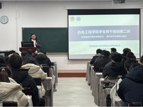 学生骨干综合素质能力提升培训班第二讲在学院会议室正式开讲,学院团委书记安春雨担任主讲人,全体本科生、研究生团学组织成员近一百名骨干齐聚一堂,围绕“活动策划与团队领导力”展开了一场干货密集的能力提升课。